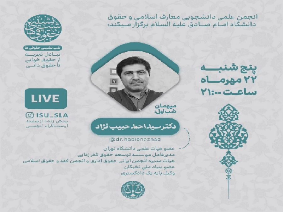 پخش از صفحه اینستاگرامی دکترحبیب نژاد و انجمن علمی حقوق دانشگاه امام صادق علیهالسلام